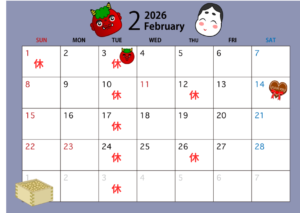2月の定休日についてご案内します。