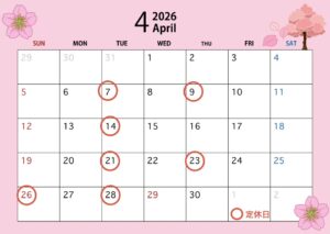 4月の定休日についてお知らせします🌸